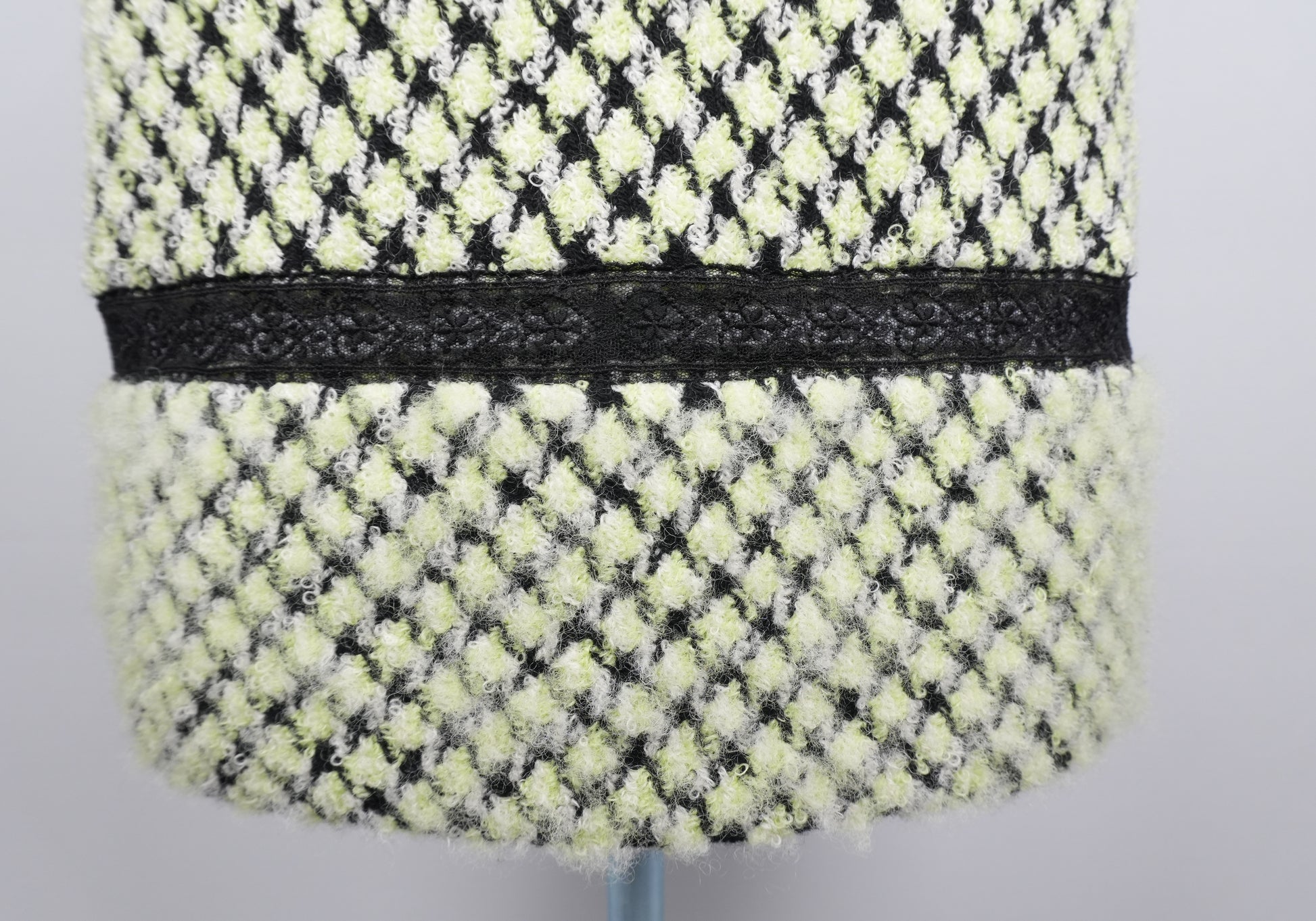 切替部分のレースが、ツイードの重さにわずかな抜けをつくります。