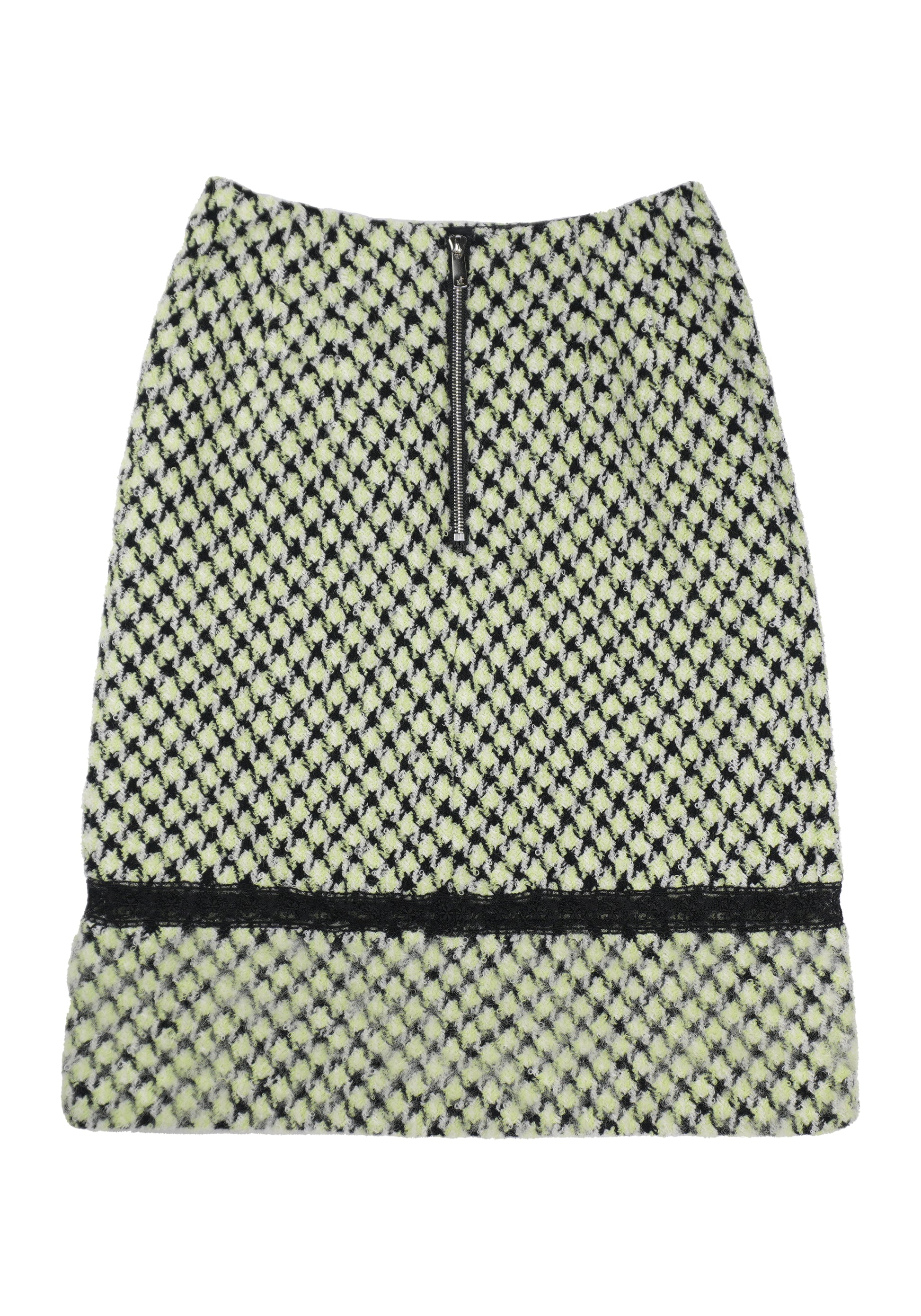 Houndstooth Tweed Straight Skirt
